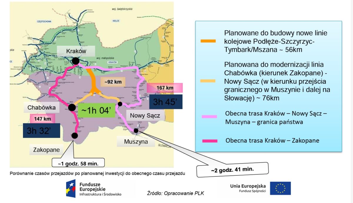 - modernizację 75 km linii Chabówka – Nowy Sącz