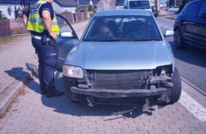 Na drodze krajowej DK46 w Lędzinach policjanci ruchu drogowego zatrzymali 76-letniego kierowcę poruszającego się w skrajnie zdezelowanym samochodzie. Auto jechało z prędkością zaledwie 4 km/h, nie miało przedniego zderzaka, jednej lampy, a dodatkowo doszło w nim do zerwaniu drążka kierowniczego. Kierowca tłumaczył, że chciał tylko dojechać do mechanika. Za nieodpowiedzialną jazdę został ukarany mandatem w … Continued