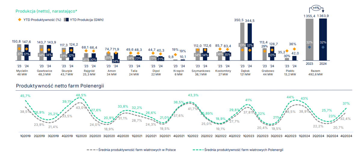 Grupa Polenergia, będąca jednym z ważniejszych uczestników rynku odnawialnych źródeł energii w Polsce, opublikowała dane operacyjne dotyczące swoich lądowych farm wiatrowych za rok 2024.
